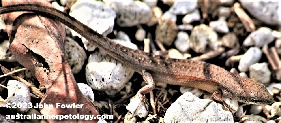The Lively (or Tussock) Rainbow Skink (Carlia vivax) is common small species which is found amongst grass (especially tussocks) and litter.