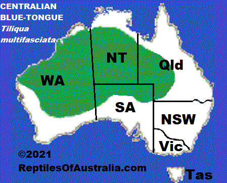 Approximate distribution of the Centralian Blue-Tongued Lizard (Tiliqua multifasciata)